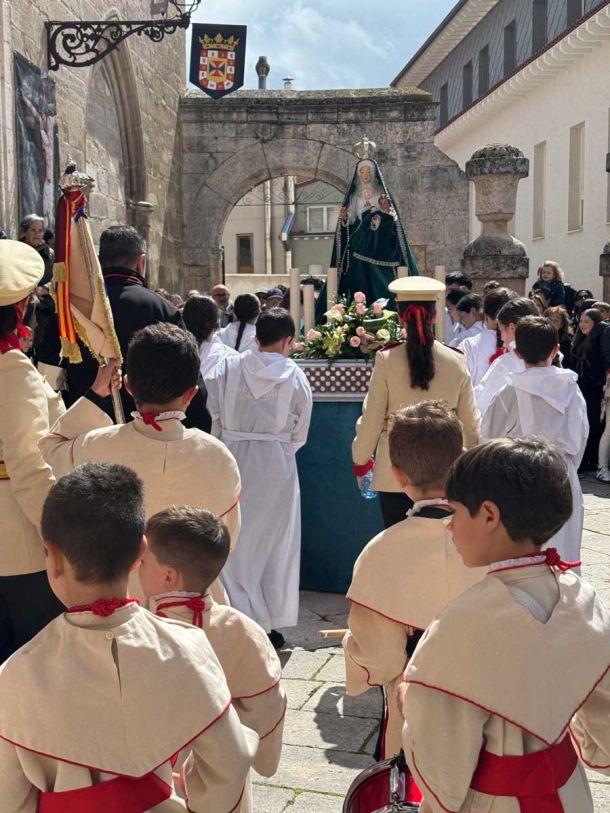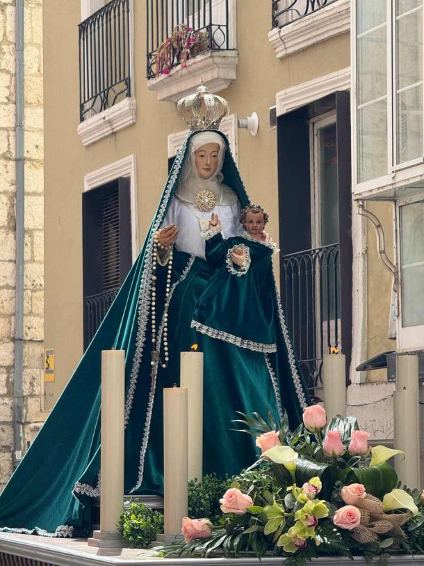 Después de que la lluvia obligara a cancelar dos procesiones en la jornada anterior, este viernes la meteorología dio una tregua y permitió que los niños pudieran protagonizar una emotiva procesión por las calles del centro de Burgos. La imagen de la Virgen del Socorro fue llevada a hombros por doce pequeños cofrades, acompañados por otros niños que interpretaron bailes tradicionales durante el recorrido, llenando de color y ternura el ambiente.