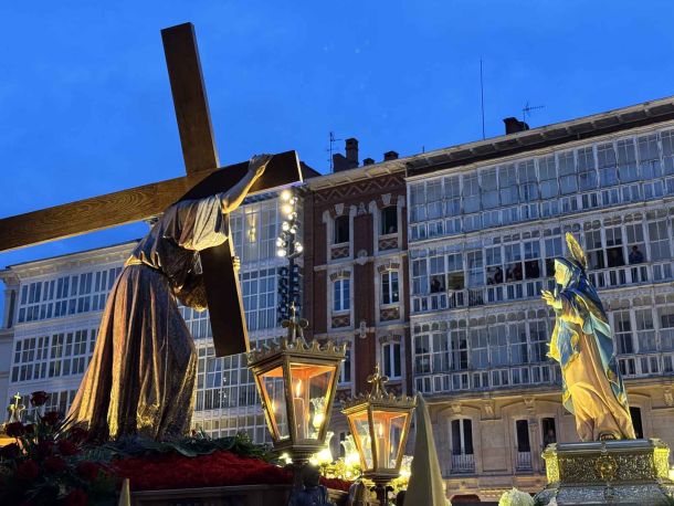 La emblemática procesión del encuentro, celebrada el Jueves Santo en Burgos, congregó a miles de fieles en el corazón de la ciudad para presenciar el emotivo encuentro entre Jesús con la Cruz a cuestas y Nuestra Señora de los Dolores. El acto central tuvo lugar en la plaza del Rey San Fernando, frente a la Catedral, donde ambas imágenes se encontraron en un momento de profunda devoción y recogimiento.
