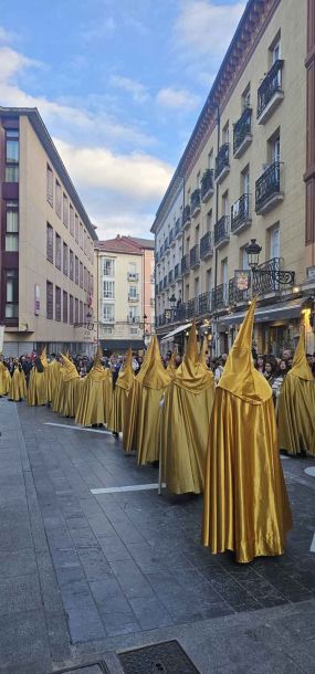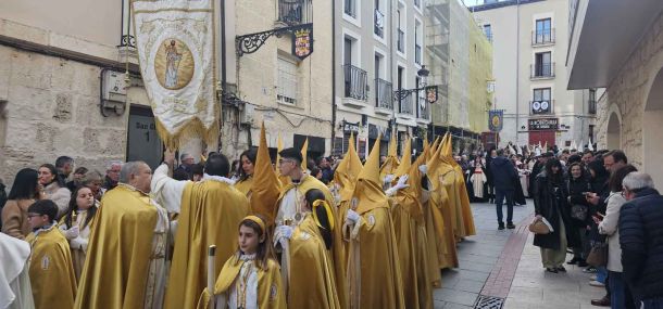 Destacar la participación activa y numerosa de la Cofradía de Cristo Resucitado con sus velones iluminados, creando una atmósfera de solemnidad y fe. Entre ellos, sobresalían especialmente sus miembros más jóvenes; los niños de la cofradía, reflejando el compromiso de las nuevas generaciones con las tradiciones de la Semana Santa burgalesa.