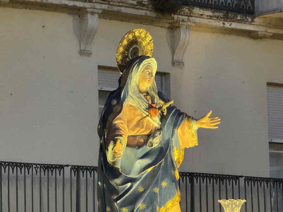 El silencio se impuso entre los asistentes mientras ambas imágenes avanzaban lentamente hasta situarse frente a frente. La emoción fue creciendo en una escena que se prolongó durante un tiempo: miradas, giros, acercamientos contenidos y un dolor compartido.