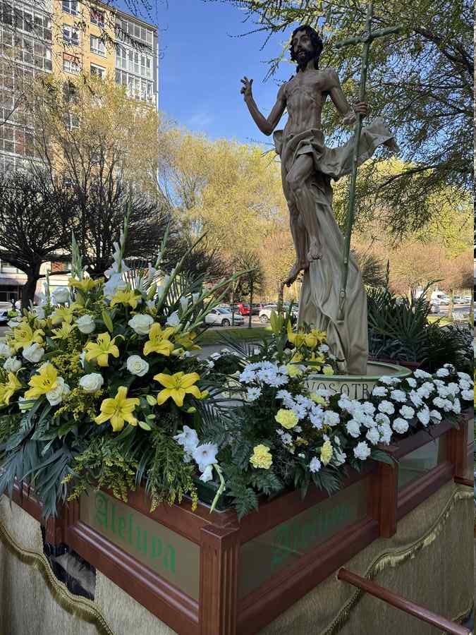 La ciudad de Burgos ha puesto el broche final a la Semana Santa con la celebración del Anuncio Pascual, una jornada marcada por la alegría y la participación masiva de fieles, en la que la Cofradía de Cristo Resucitado de nuestra parroquia ha tenido un papel central junto con la Virgen de la alegría de la iglesia de San Nicolás de Bari.