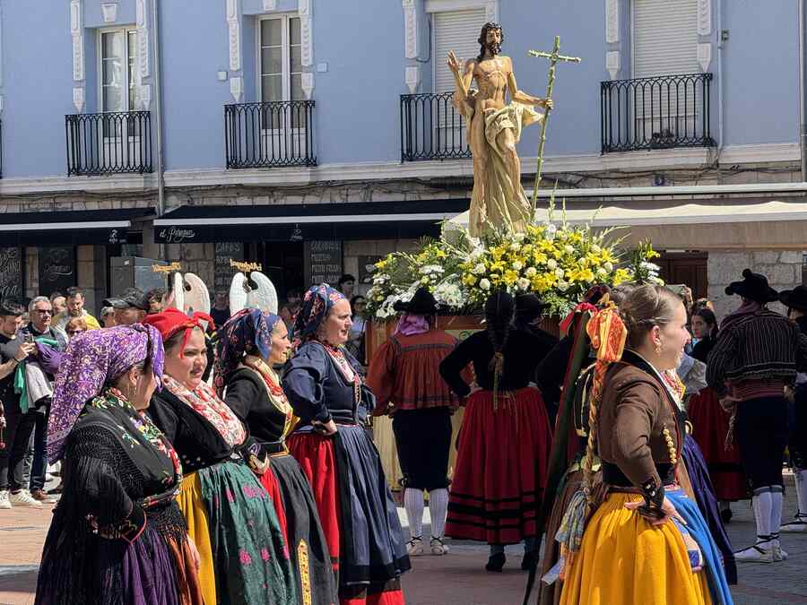 Tras el Encuentro, ambas imágenes junto a sus cofradías emprendieron juntas el recorrido hacia la plaza del Rey San Fernando, acompañadas por otros cofrades, representantes institucionales, fieles y grupos de danzas tradicionales como Diego Porcelos y Los Zagales. Ya en la plaza, se desarrolló el acto central del Anuncio Pascual, en el que los más pequeños también tuvieron su protagonismo con el sonido de los tamborcillos, seguido de danzas y la lectura de poemas en honor a Cristo Resucitado y a la Virgen de la Alegría. El obispo emérito Fidel Herráez bendijo a los presentes, recordando que el espíritu de la Pascua debe vivirse cada día.