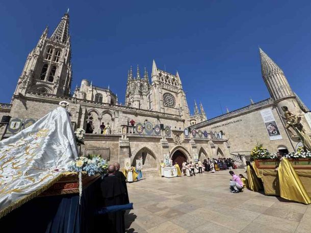 Las cofradías de Cristo Resucitado y la Virgen de la alegría protagonizan el Anuncio Pascual en una multitudinaria y veraniega mañana en Burgos