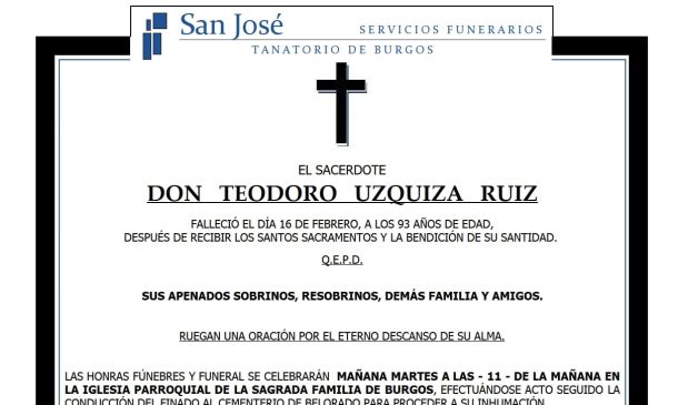 Fallecimiento de D. Teodoro Uzquiza Ruiz